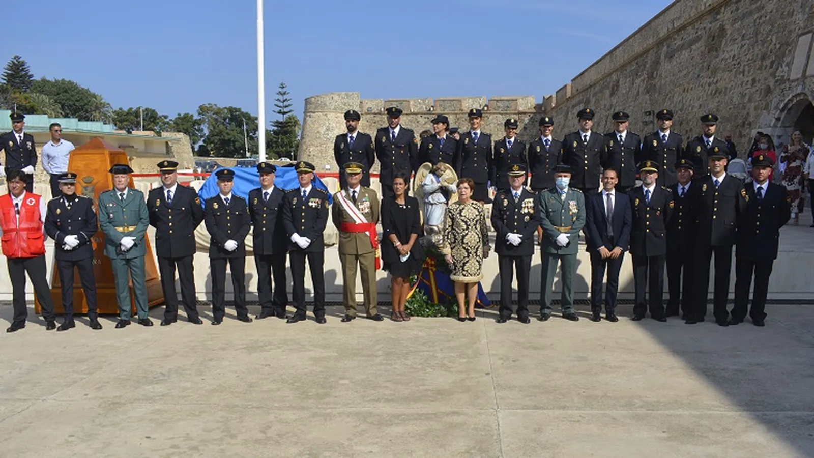 La Policía Nacional de Ceuta celebraba este viernes el acto institucional con motivo de la festividad de los Santos Ángeles Custodios, patronos del cuerpo. En esta ocasión, la situación epidemiológica ha permitido que el acto central para conmemorar esta celebración haya podido desarrollarse al aire libre, concretamente, en las Murallas Reales.