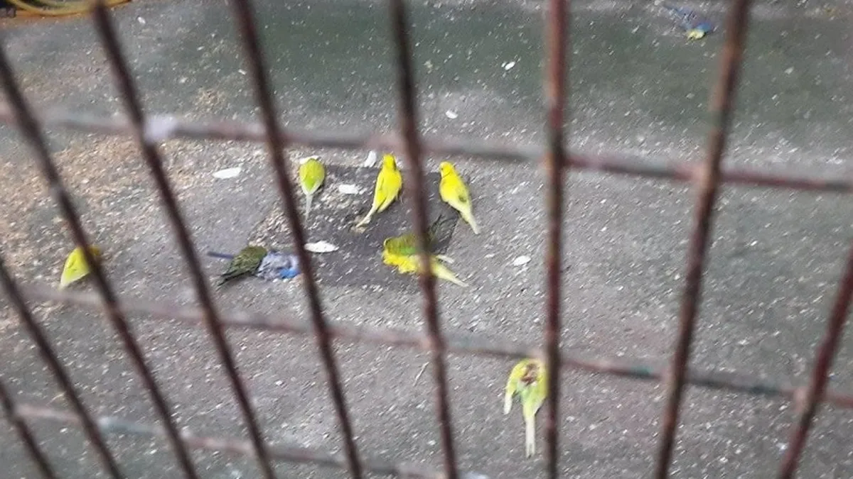 Estas imágenes dramáticas están circulando las redes sociales donde se cuenta que en una de las jaulas del parque hay tres pájaros muertos mientras el resto se va alimentando de los restos
