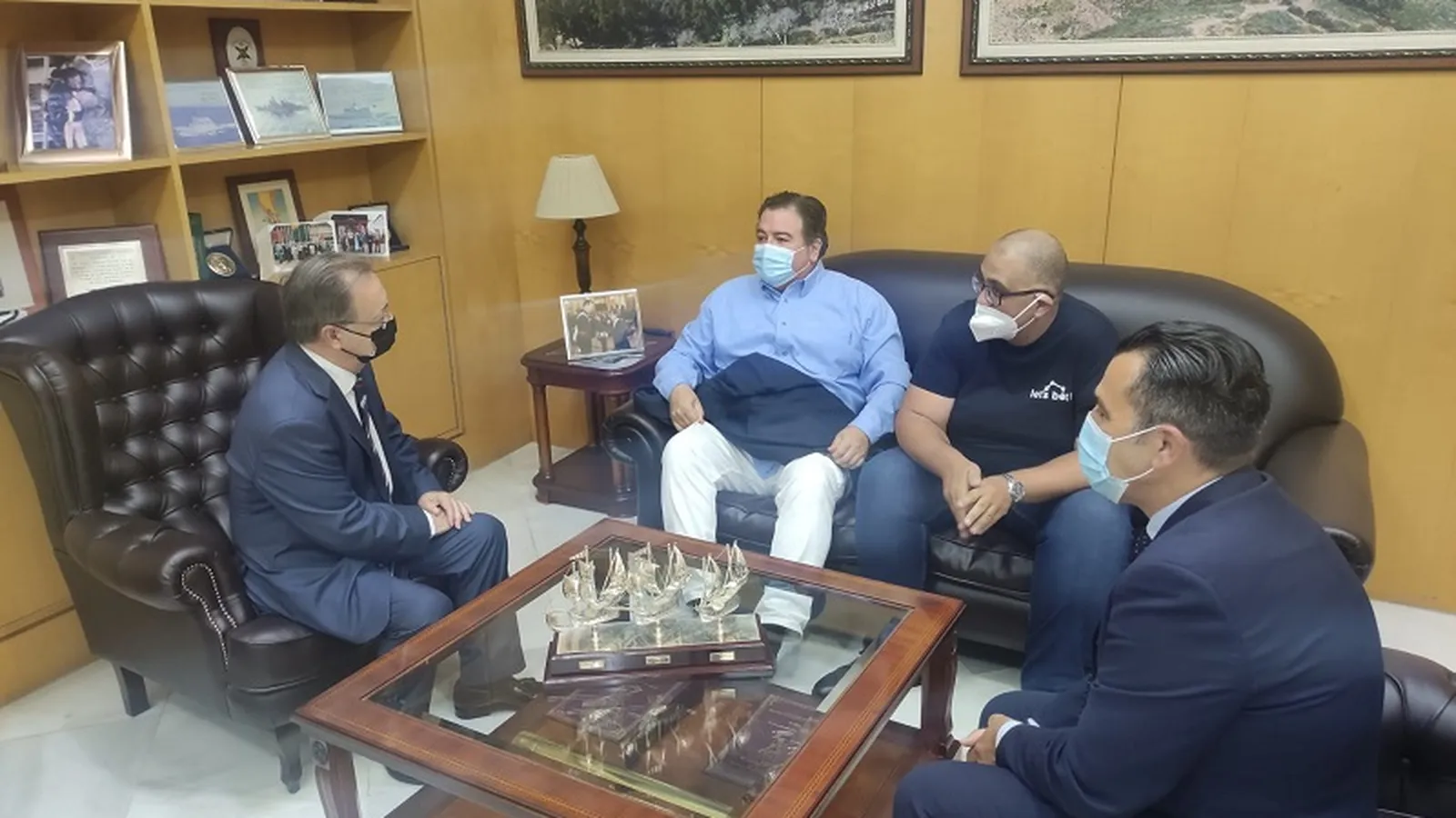 El presidente de la Ciudad, Juan Vivas, y el vicepresidente segundo y consejero de Educación y Cultura, Carlos Rontomé, han mantenido esta mañana un encuentro con el exembajador de Estados Unidos y empresario, Richard Duke Buchan, de visita en Ceuta con motivo del Campus de Robótica que se desarrolla este fin de semana.
