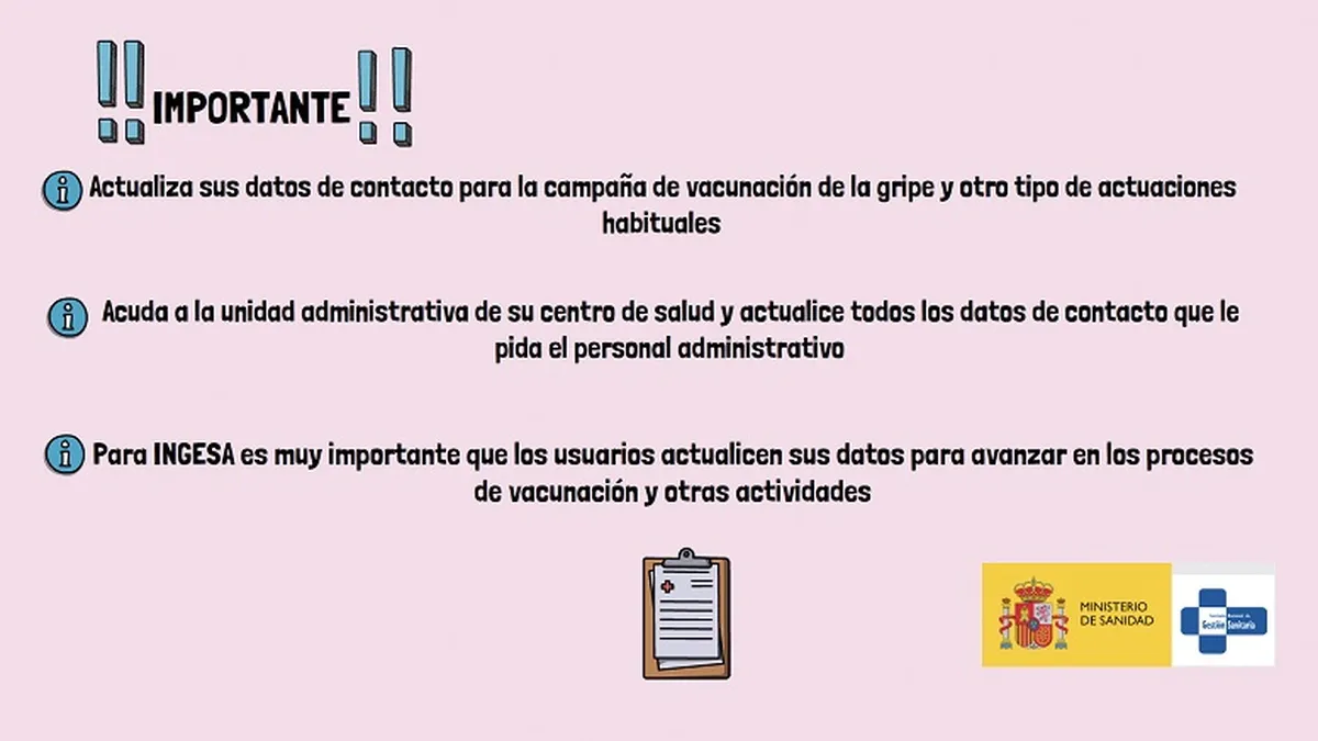 INGESA pide a sus usuarios actualizar sus datos de contacto para la campaña de vacunación de la gripe