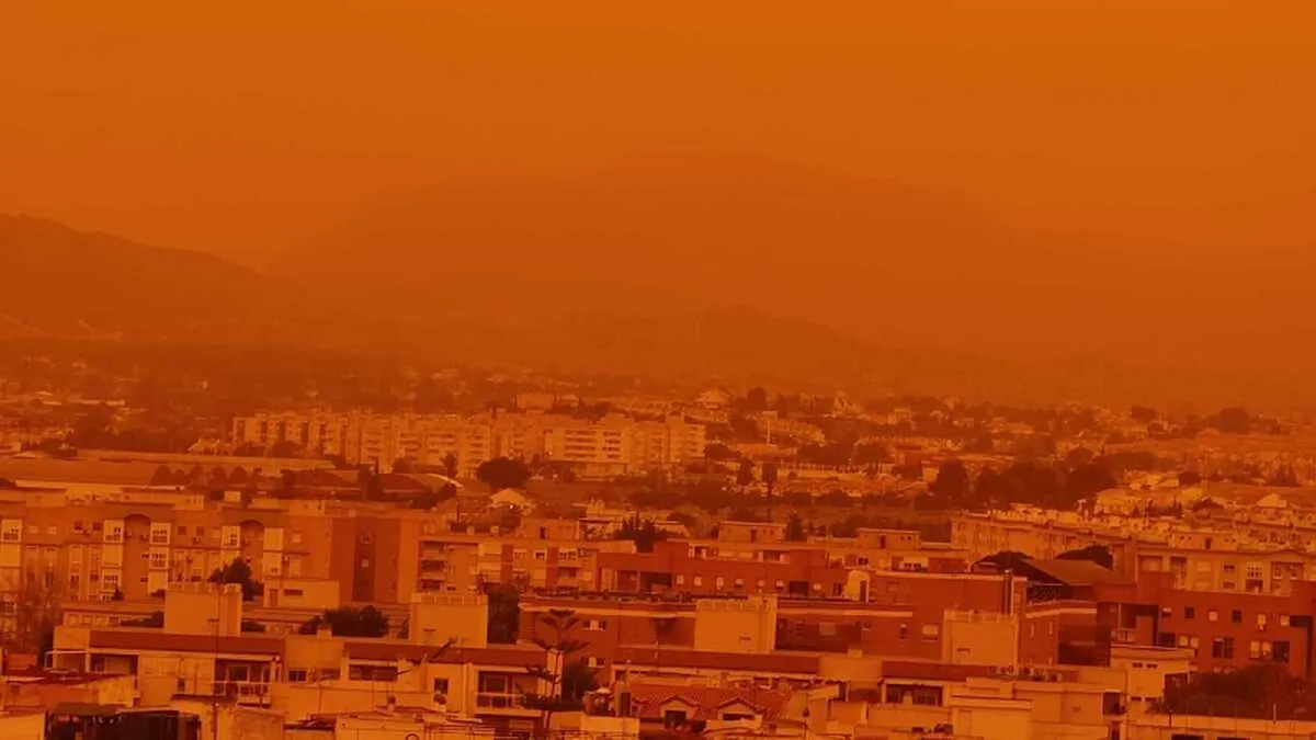 Varias ciudades españolas atardecieron este lunes empañadas por un polvo en suspensión que ha teñido de naranja los paisajes de Murcia, Alicante o Almería, y que llega importado desde el Sahara. El fenómeno, conocido como calima o lluvia de sangre, se ha ido extendiendo este martes por el resto de la península, llegando también a la capital y al norte del país, acompañando las lluvias de barro y reduciendo la visibilidad.