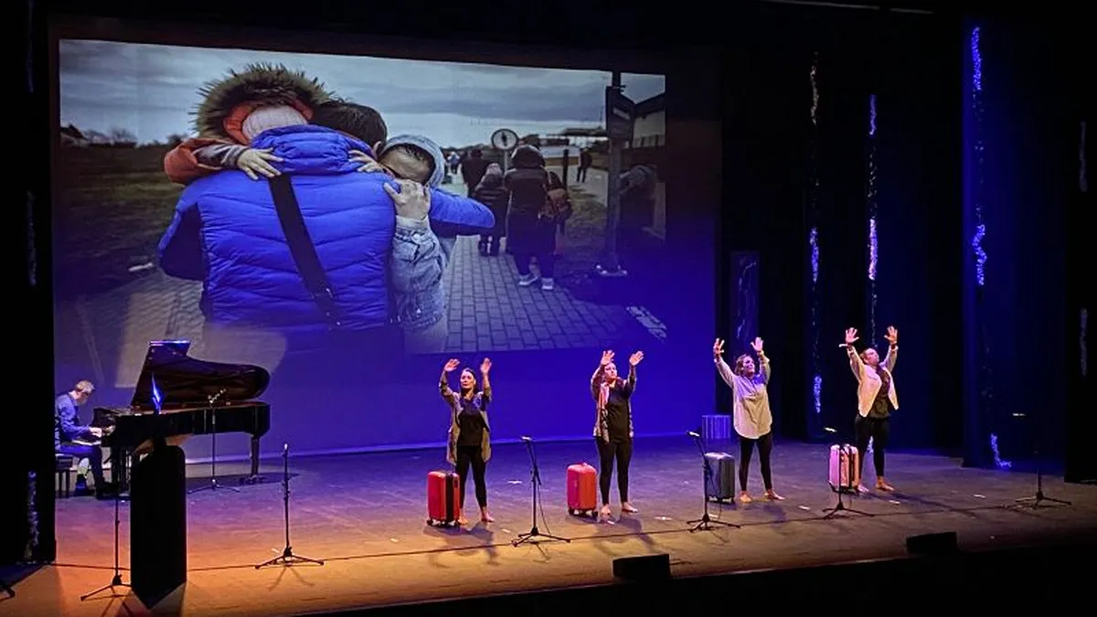 El ceutí, Guillermo Ríos, que hace poco dirigía Otelo en el Revellín ha sido el encargado de la presentación del museo vivo, en colaboración de alumnos que han demostrado sus dotes artísticas. La guerra en Ucrania ha sido también protagonista gracias a estos estudiantes, cuatro chicas se han subido al escenario para recrear una performance que representaba, al menos de forma metafórica, algo de lo que sufre un ciudadano en guerra.