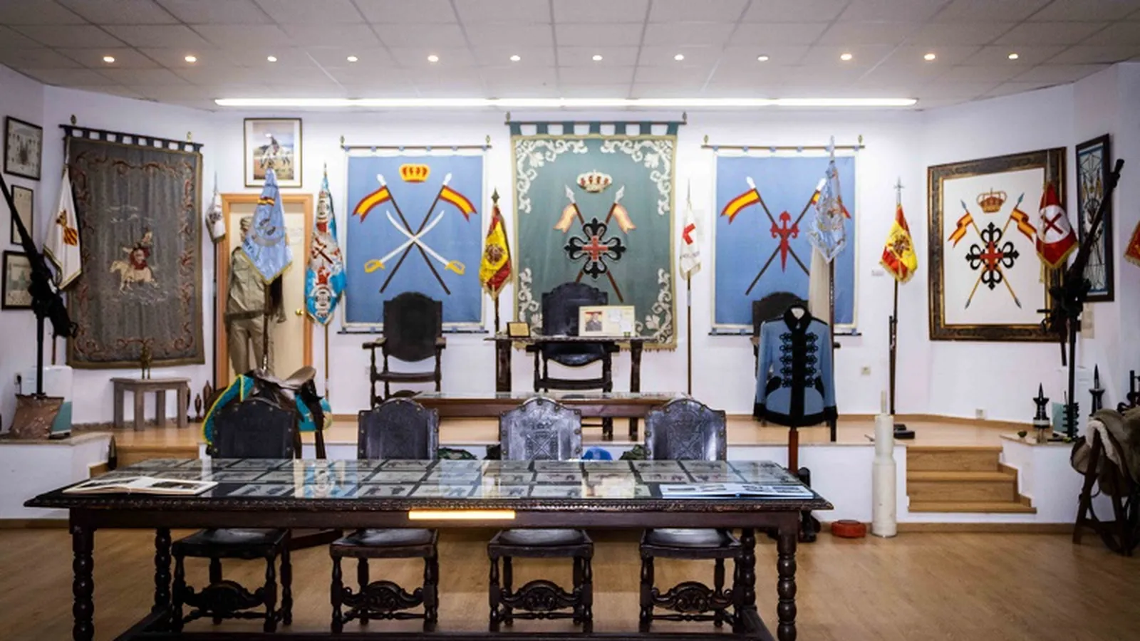 La Sala de Laureados rinde homenaje a los 115 jinetes de Caballería española que han recibido la Cruz Laureada de San Fernando, la más alta condecoración otorgada en reconocimiento al valor militar a la que se suma la Medalla Balmis, recibida por la regimiento por su acción durante la pandemia.