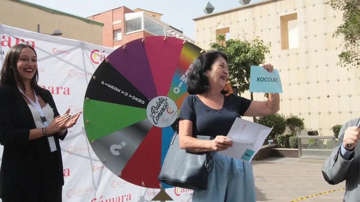La Cámara de Comercio de Ceuta ha celebrado este martes en la Plaza de los Reyes ‘La Ruleta del Comercio’, que se celebrará hasta el viernes 7 de octubre. El juego consistía en hacer girar la ruleta para obtener un premio asegurado de los distintos comercios adheridos. La ruleta tiene siete casillas de un color cada una: rojo, azul, verde, amarillo, naranja, rosa y morado, que corresponde con un premio.