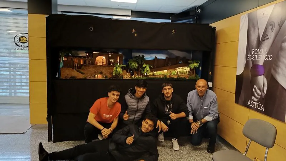 "Se da la circunstancia que, en la recogida del anterior belén, éste sufrió graves daños. Al inicio de este curso se plantea dicha situación al alumnado de Básica de Vehículos, exponiéndoles dicho problema. Dando un paso al frente y decidiendo reparar el mismo para que el centro pueda contar con su tradicional belén".