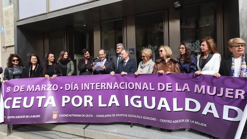 Tras la gala del Premio María de Eza en el que Carmen Figuerola, ejemplo del feminismo en Ceuta y de cómo logró abrirse camino en un mundo de hombre rompiendo el techo de cristal e un época que era impensable, todas las autoridades como asistentes además de otros simpatizantes se han reunido frente a las puertas del Ayuntamiento de Ceuta para leer el manifiesto por el 8 de marzo de la Ciudad y el Centro Asesor de la Mujer.
