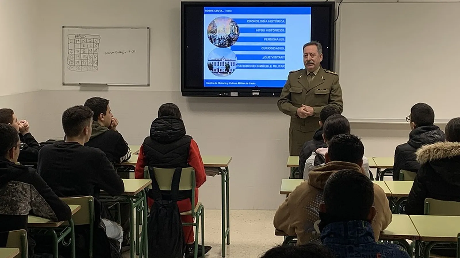 Los días 7 y 8 de este mes el Centro de Historia y Cultura Militar de Ceuta ha impartido una serie de conferencias sobre historia militar de Ceuta a los alumnos de 3º de la ESO y 1º diversificación del IES Puertas del Campo.