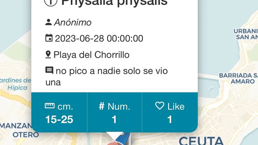 Tanto es así, que algún usuario que se encontraba el miércoles, 28 de junio, en la playa del Chorrillo, envió el aviso a la aplicación apta para Android, Apple e incluso web. De esta forma, los vecinos de Ceuta y el conjunto de turistas que ya comienzan a llenar los espacios costeros, pudieron tener conocimiento de la llegada de una ‘Carabela Portuguesa’ o en términos científicos ‘Physalia Physalis’. Según los vecinos que se ubicaban en El Chorrillo, este ejemplar fue localizado por un bañista. Además, según las informaciones oficiales remitidas a El Pueblo, se regresó a la normalidad, con bandera verde aunque con vigilancia intensiva. Por lo que no se tuvo que cerrar la playa. Una especia ya vista antes en la Ciudad Autónoma.