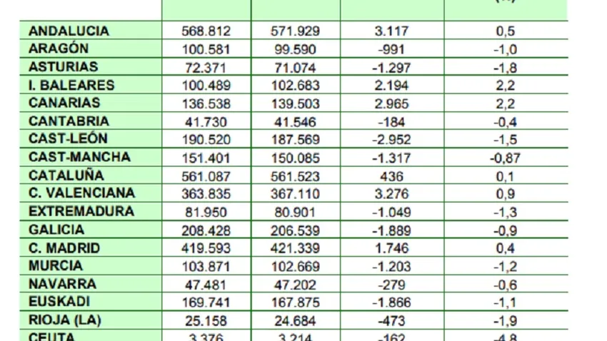Solo las comunidades autónomas de Baleares (+2,2%), Canarias (+2,2%), Comunidad Valenciana (+0,9%), Andalucía (+0,5%), Comunidad de Madrid (+0,4%) y Cataluña (+0,1%), comparando cifras de afiliación del mes de junio de 2023 con las de junio de 2022, “son las que han visto incrementadas sus cifras de autónomos”