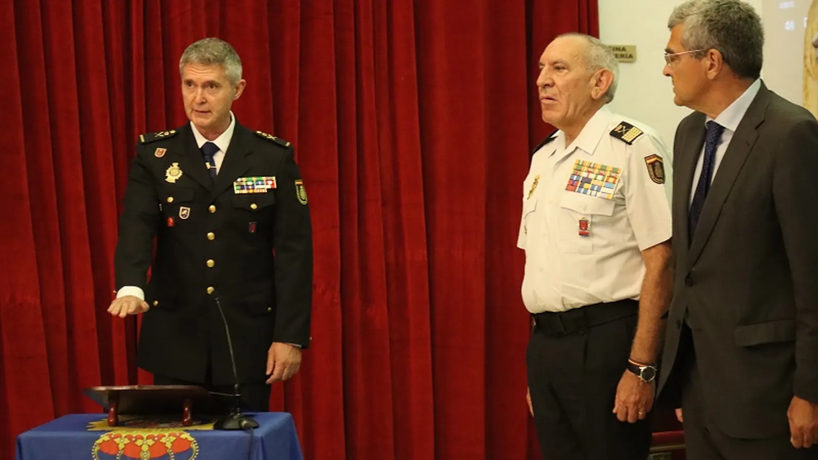 El Casino Militar de la Ciudad Autónoma ha recibido este lunes a múltiples autoridades ceutíes y nacionales con el fin de nombrar de forma pública a Francisco López Gordo como nuevo Jefe Superior de la Policía Nacional en Ceuta. En el punto presidencial del nombramiento han estado presentes el presidente de la Ciudad, Juan Jesús Vivas, el director adjunto de la Policía Nacional, José Ángel González, el delegado del Gobierno en Ceuta, Rafael García y el director de la Policía Nacional, Francisco Pardo Piqueras, como también el propio Francisco López Gordo que ha tomado el bastón de mando tras la jura de su nuevo cargo dentro del Cuerpo. Además, en las inmediaciones a la zona presidencial se encontraban varios de sus predecesores, como Andrés Garrido o Javier Nogueroles.