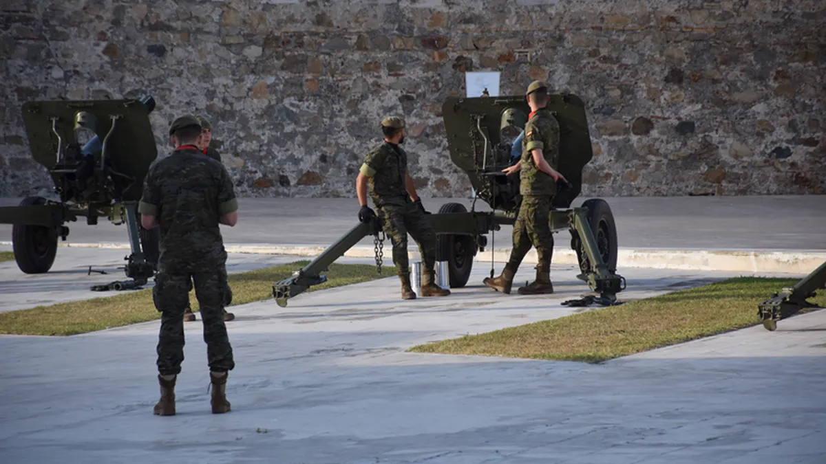El Patio de Armas de las Murallas Reales ha acogido a última hora de la tarde el homenaje de Ceuta al décimo aniversario de la proclamación de Felipe VI como Rey de España. Las autoridades de la ciudad se han reunido este miércoles, alrededor de las 20:30h, para presenciar el izado de bandera que ha sido musicalizado por el Himno Nacional y el estruendo de las 21 salvas de cañón.