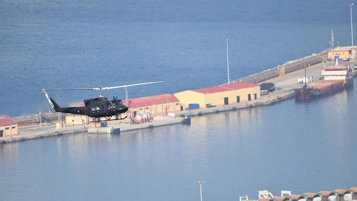 Los helicópteros de maniobra BHELMA VI sobrevuelan los cielos de Ceuta