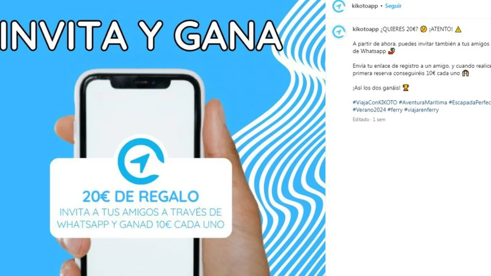 Kikoto regala 20 euros por recomendar a un amigo y comprar un billete de ferry
