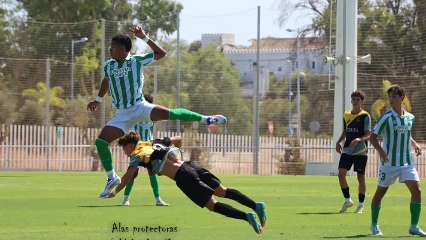 El equipo ceutí recibió el primer gol nada mas iniciarse la primera mitad. El equipo bético marcaría el segundo gol a los 18 minutos de juego en otro error defensivo.