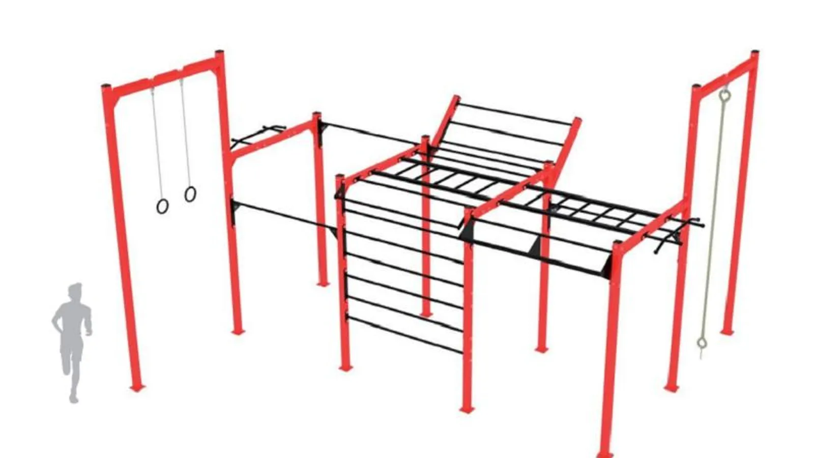 La instalación de la Jaula Trainingbox se utiliza para la realización de múltiples ejercicios deportivos al aire libre basados en ejercicios de entrenamientos Crossfit y Street Workout. Así, está compuesta por cuatro pórticos de altura 2,30 metros y dos pórticos de altura 3,81 metros, contando con tres barras simples en diferentes alturas, un pórtico de anillas, una cuerda de trepa, una escalera inclinada, dos barras de denominadas, barras triangulares, una espaldera y dos escaleras horizontales.