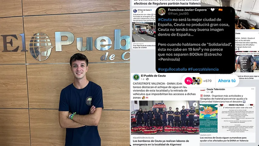 La publicación del joven activista ceutí Francisco Javier Cepero se ha vuelto viral en las redes sociales, tras un mensaje en el que exalta el espíritu solidario de Ceuta en un momento crítico para España. La publicación de Cepero, acompañada de recortes de noticias de varios medios locales, entre ellos El Pueblo de Ceuta, resalta el compromiso de Ceuta con las personas afectadas por la reciente DANA (Depresión Aislada en Niveles Altos) que ha devastado gran parte de Valencia y otras comunidades autónomas.