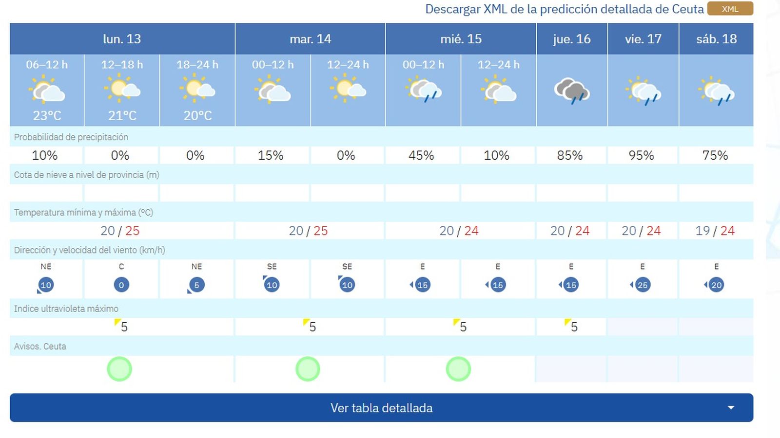 El tiempo en Ceuta hoy: jornada estable y sin lluvias este lunes 13 de octubre, con cambios a mitad de semana