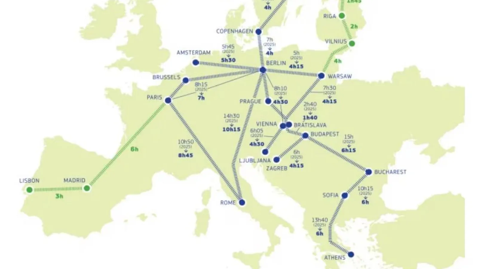El nuevo plan ferroviario europeo reducirá drásticamente los tiempos de viaje: se podrá ir de París a Lisboa vía Madrid o de Sofía a Atenas en seis horas, dentro de una red que busca unir a toda Europa.