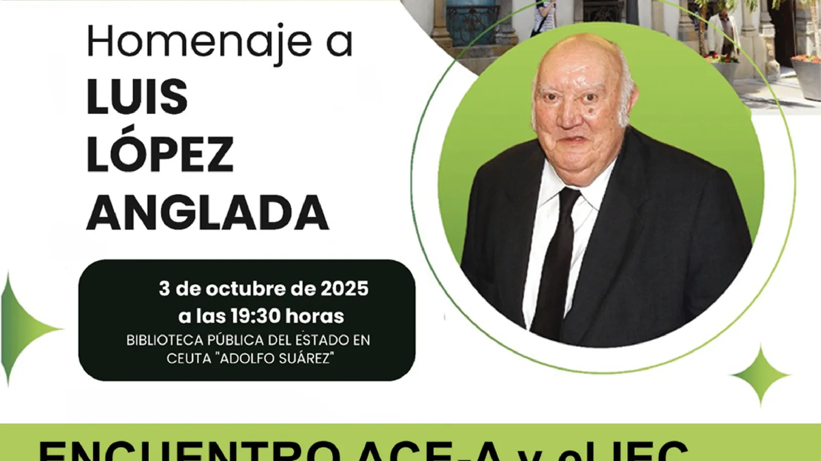Ceuta/ “Ceuta es pequeña y dulce; está acostada/ en los brazos del mar, como si fuera/ una niña dormida que tuviera/ la espuma de las olas por almohada”. Los versos de Luis López Anglada, poeta ceutí fallecido en 2007, forman parte del imaginario de la ciudad y son recitados con frecuencia por el presidente Juan Vivas cuando presenta Ceuta a foráneos. Este viernes 3 de octubre, su figura volverá a resonar con fuerza en un acto homenaje abierto al público, organizado por la Asociación Colegial de Escritores de Andalucía (ACE-Andalucía) en colaboración con el Instituto de Estudios Ceutíes (IEC). La cita será a las 19:30 horas en la Biblioteca Pública Adolfo Suárez, y contará con un programa que combina poesía, música y memoria.