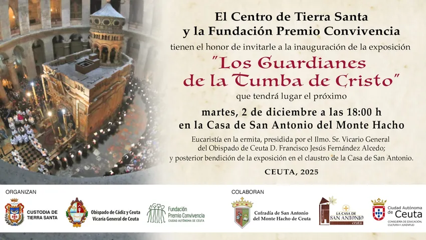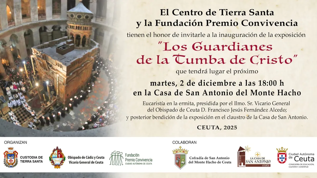 Ceuta/ La Consejería de Educación, Cultura y Juventud, a través de la Fundación Premio Convivencia, ha organizado la exposición fotográfica “Los Guardianes de la Tumba de Cristo”, en colaboración con la Vicaría General de Ceuta y la Cofradía de San Antonio, y que podrá contemplarse a partir del próximo 2 de diciembre en el Claustro de la Casa de San Antonio del Monte Hacho de Ceuta, ofreciendo una oportunidad única para conocer de cerca la labor de los franciscanos en Tierra Santa.