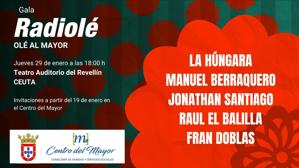 El evento, que comenzará a las 18.00 horas, reunirá sobre el escenario a un elenco de artistas integrado por “La Húngara”, Manuel Berraquero, Raúl “El balilla”, Fran Doblas y Jonathan Santiago, en una gala que se ha consolidado como uno de los encuentros culturales dirigidos al público sénior en Ceuta.