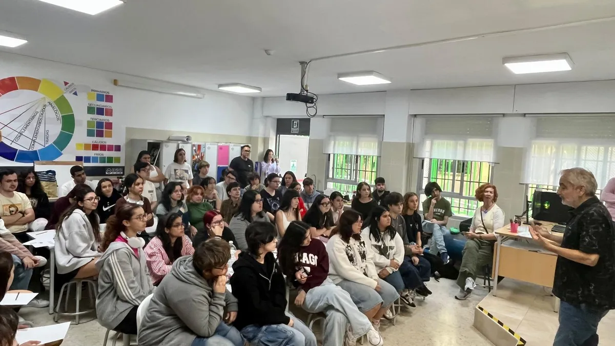 El jefe del departamento de Bachillerato Artístico de la Escuela, David Muñoz Arbona, se ha mostrado sorprendido por la “soltura pasmosa” de Álvarez a la hora de dibujar, y ha relatado a este diario el buen ambiente que se ha respirado con la participación del alumnado en el taller, que se ha animado a acompañar al murciano en la pizarra.