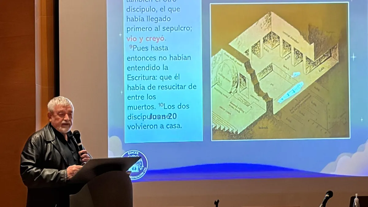 Miñarro López ha basado su exposición en los estudios científicos más bien ‘escasos’ realizados a ambas reliquias (por ejemplo a la sangre o al polen impregnados), pero también a las pruebas documentales de mayor veracidad para él, el Evangelio de San Juan, el único “testigo directo” de la supuesta resurrección de Cristo. “Juan estuvo al pie de la tumba”, ha justificado, para luego explicar que la traducción latina que el castellano le ha dado a la palabra “sudarium” (usada por Juan) no se corresponde con exactitud con el término “mortaja”.