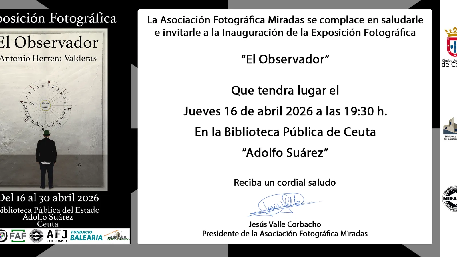 La Biblioteca Pública del Estado Adolfo Suárez inaugurará este jueves 16 de abril a las 19.30 horas la exposición fotográfica ‘El Observador’, del autor Antonio Herrera Valderas, una muestra que podrá visitarse hasta el próximo 30 de abril y que plantea una aproximación a la fotografía como lenguaje introspectivo y artístico.