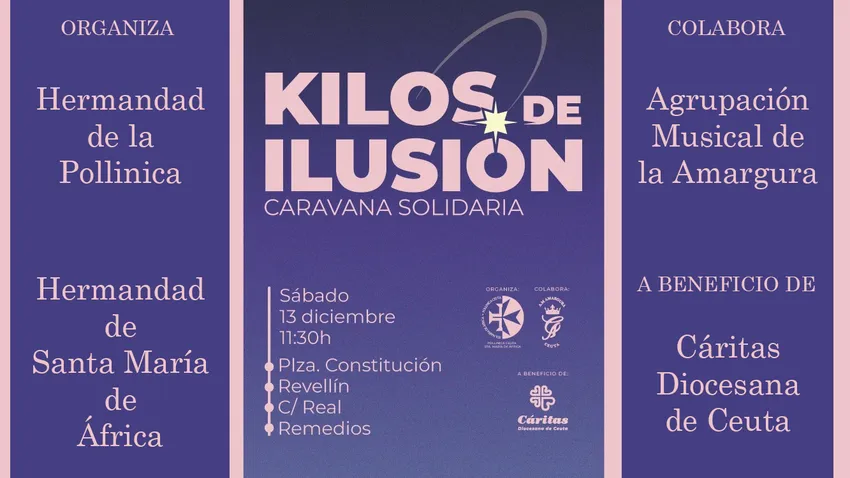 Este sábado día 13 de diciembre, las hermandades de La Pollinica y de Santa María de África organizan conjuntamente una caravana solidaria para recoger alimentos en favor de los más necesitados.