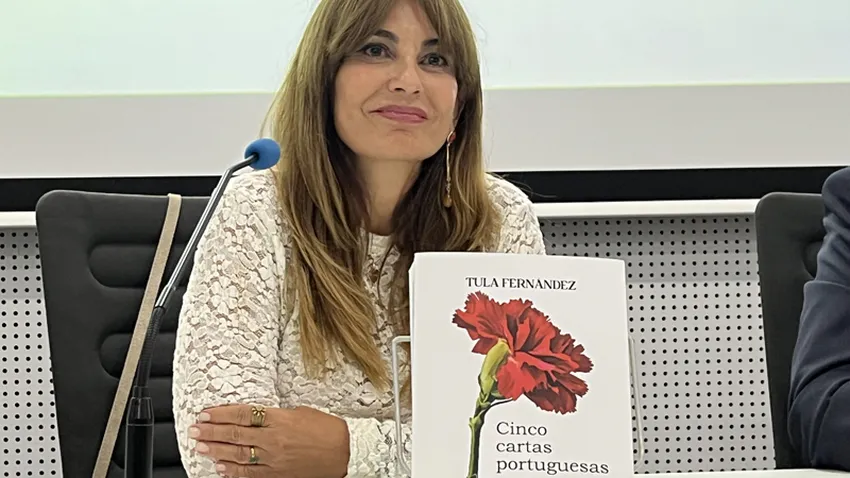 Ceuta/ Al oír la melodía del ‘Grândola, Vila Morena’, Tula Fernández supo que se quedaba en Portugal. No ella, sino la historia de su tercera novela, cuyo emplazamiento tuvo claro la escritora afincada en Ceuta en cuanto escuchó la mítica canción portuguesa, que simbolizó el inicio de la Revolución de los Claveles. Aquel hito del 25 de abril de 1974 marca el inicio de la nueva obra de la jerezana de sonrisa perenne, que este jueves logró un lleno absoluto en la sala de usos múltiples de la Biblioteca Pública Adolfo Suárez, donde presentó ‘Cinco cartas portuguesas’ ante medio centenar de lectores y seres queridos. Un relato de amor y "memoria histórica" del país vecino.