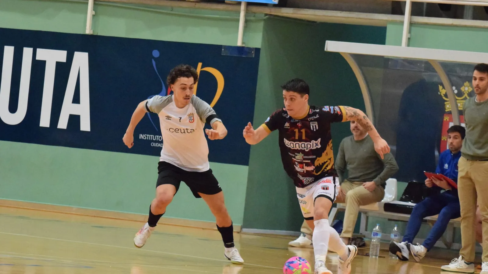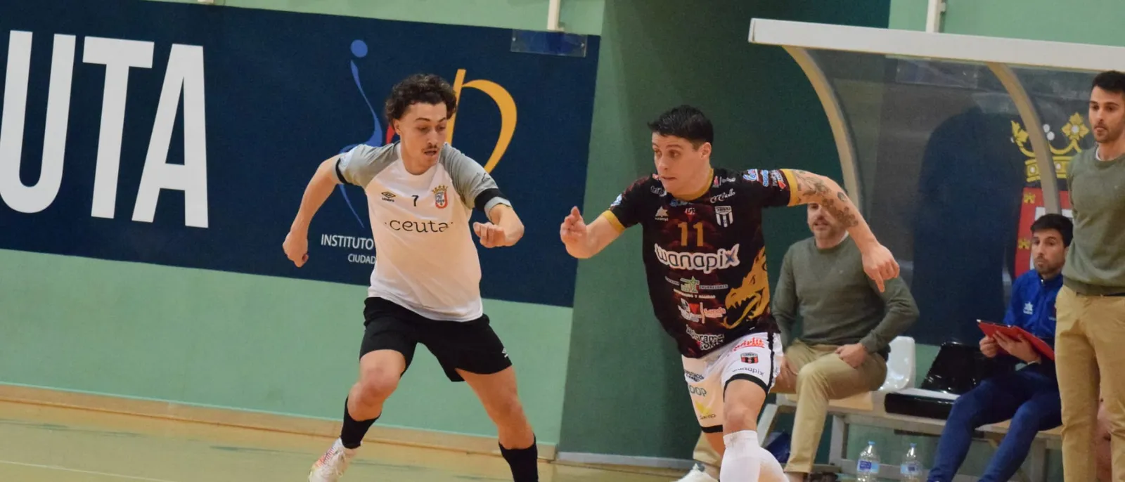 El ceutí adelantó a su portero Dennis para jugar de cinco. Los ceutíes pidieron un gol en el minuto 36 que los árbitros no concedieron. En los últimos minutos uso a Álex Moñino como portero-jugador.