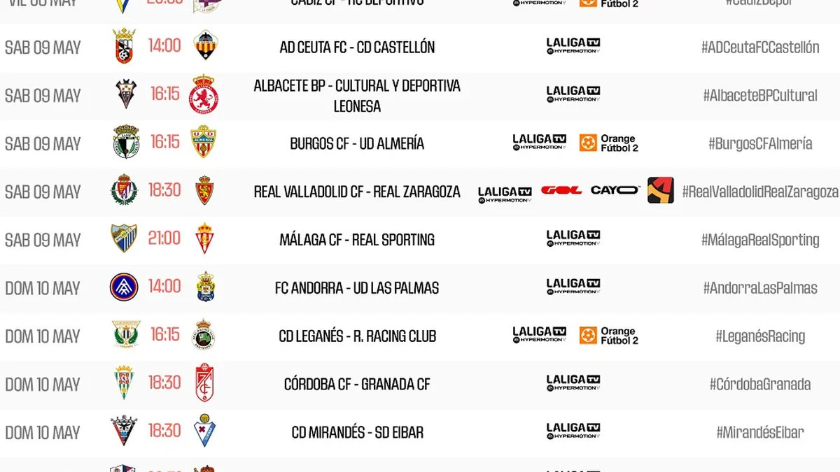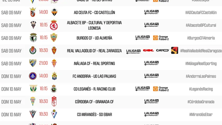 El partido corresponde a la trigésima novena jornada de la Liga Hypermotion