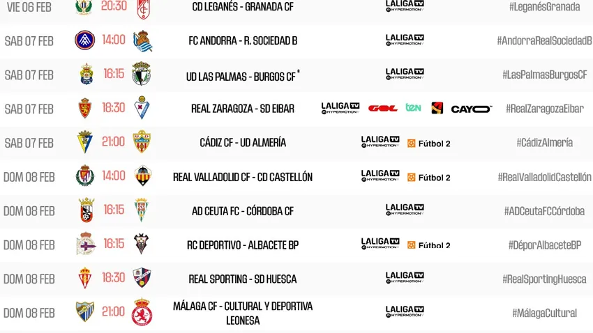 LaLiga da a conocer los horarios de la jornada 25 de la Liga Hypermotion