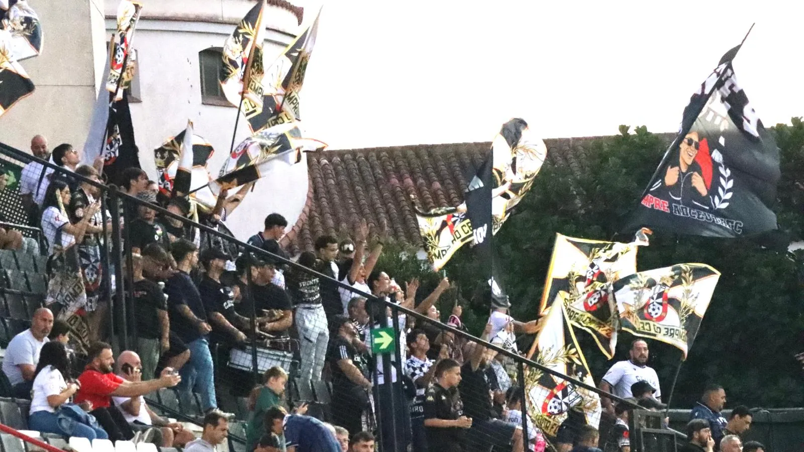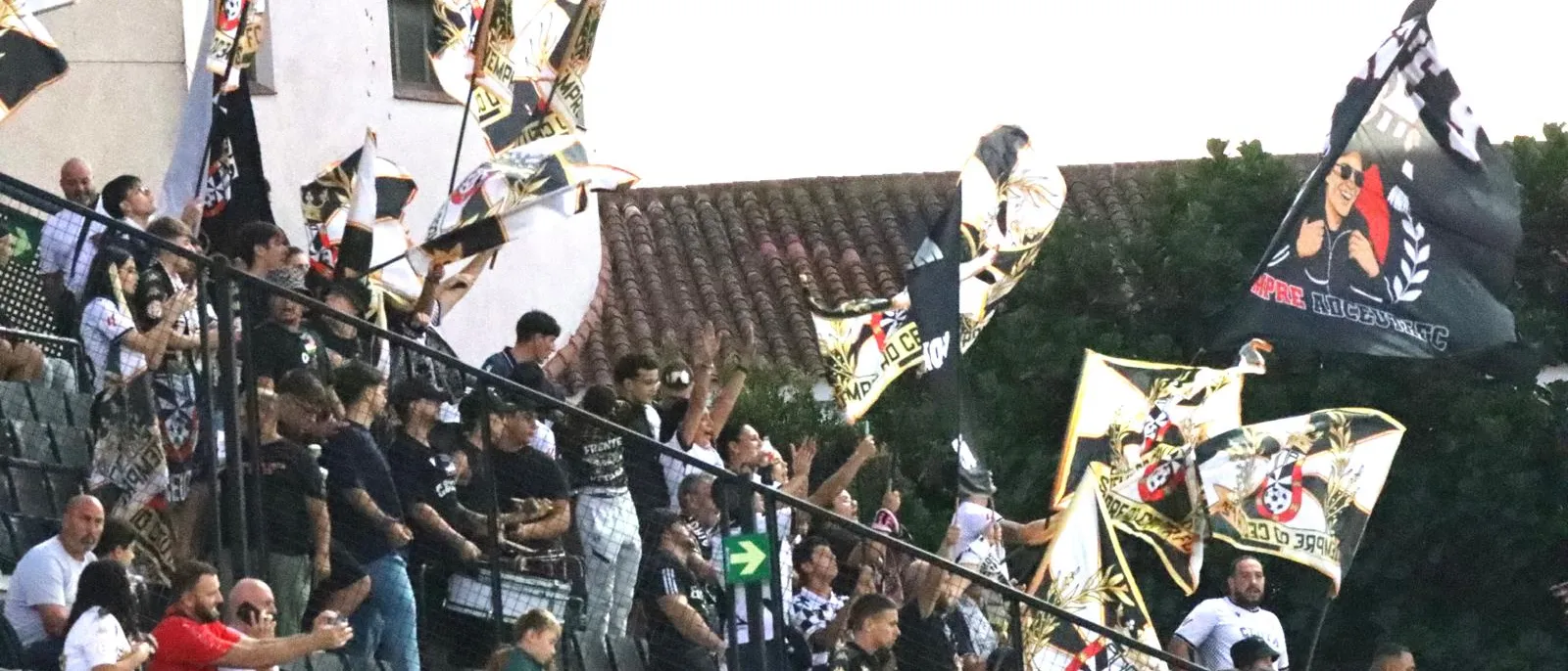 La grada del Alfonso Murube se convirtió en un auténtico espectáculo de pasión y color. La afición del AD Ceuta FC no dejó de animar ni un segundo, llenando el estadio de cánticos, banderas y vítores que impulsaban al equipo frente al Eibar. Cada pase y cada jugada recibían el aliento incesante de miles de seguidores, transformando el campo en un verdadero vendaval blanco y negro donde la energía de la hinchada se sentía en cada rincón