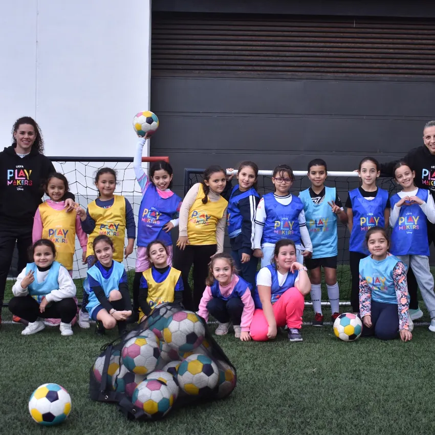 UEFA Playmakers está dirigido a niñas de entre 5 y 8 años y tiene como objetivo acercar el fútbol desde una perspectiva lúdica y educativa, fomentando valores a través de una metodología adaptada y basada en el universo Disney.