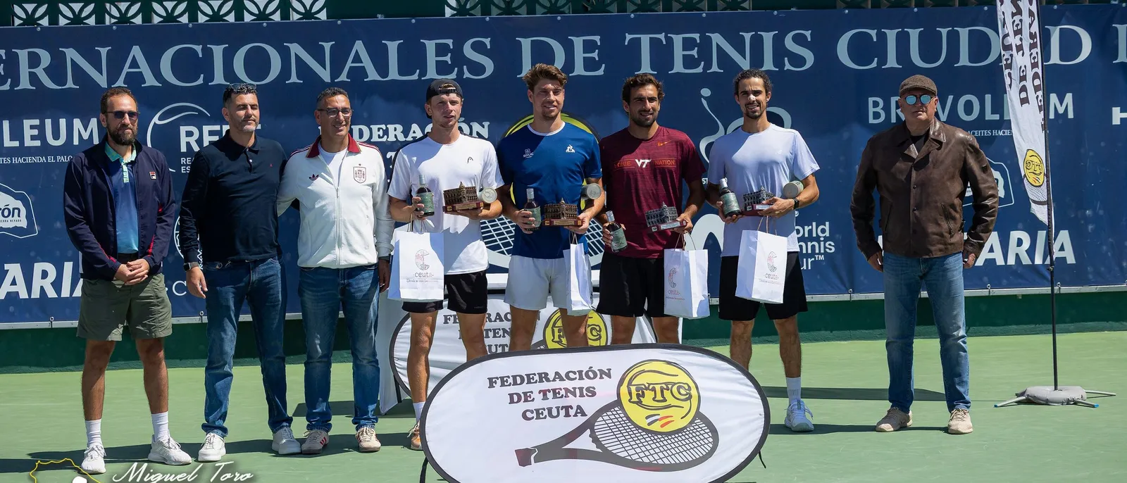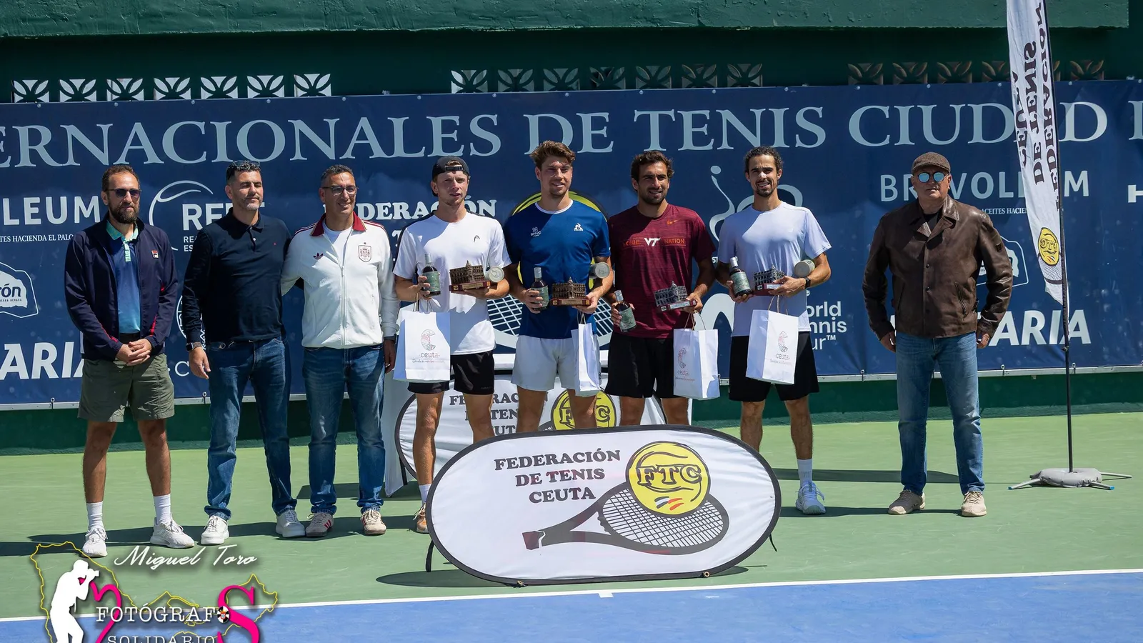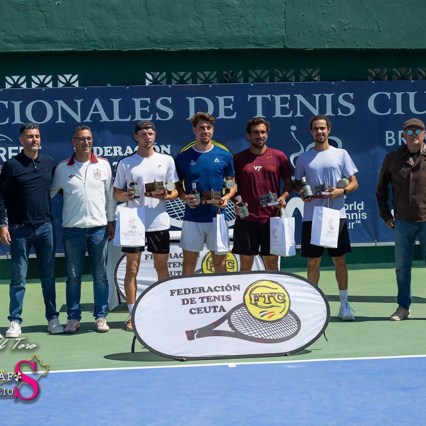 Los campeones y finalistas recibieron su trofeo correspondiente con la fachada del Ayuntamiento de la ciudad Autónoma, sus premios económicos, bolsa de regalos de Turismo Ceuta y así como un bote de pelotas Head y botella de aceite del patrocinador principal Bravoleum.