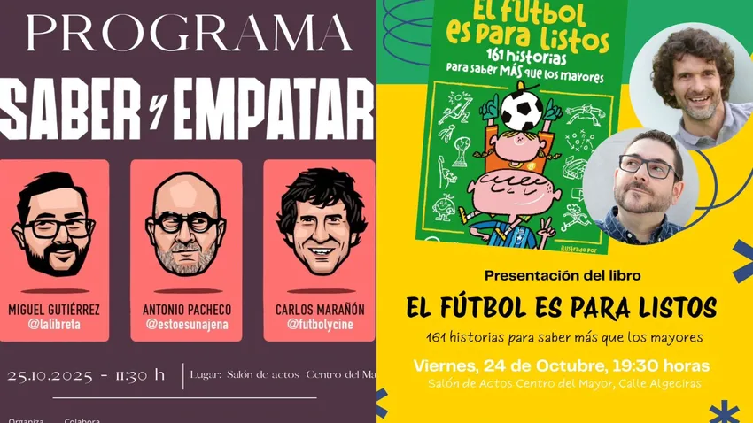 Además, el viernes 24 de octubre a las 19:30 horas, se celebrará la presentación del libro “El fútbol es para listos. 161 historias para saber más que los mayores”, una obra dirigida al público juvenil y familiar que combina relatos futbolísticos con enseñanzas educativas y culturales.