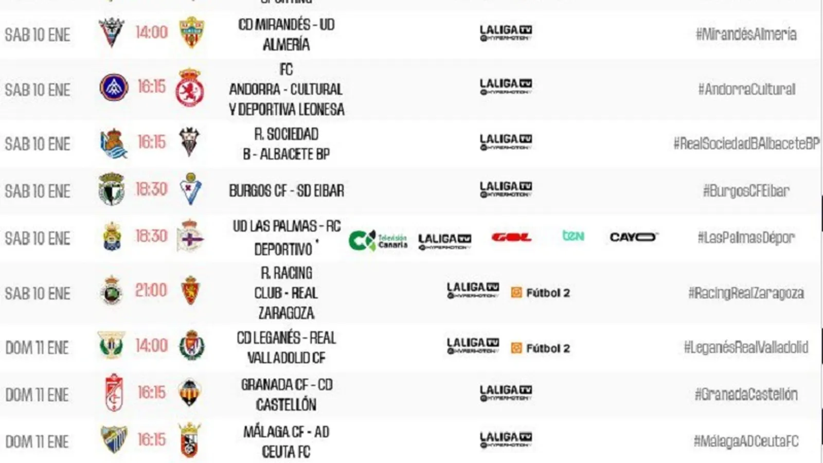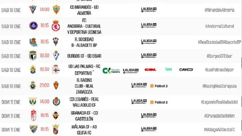 La Liga ha anunciado los horarios de la última jornada de la primera vuelta de la Liga Hypermotion.