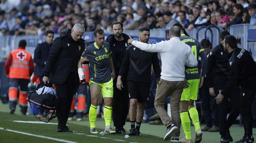 Desde el primer momento la cara del centrocampista y de los fisios de la AD Ceuta demostraron que la lesión no tenía buena pinta aunque serán las pruebas médicas las que dictaminen el alcance real de la misma.