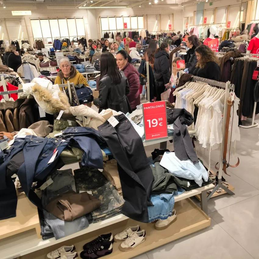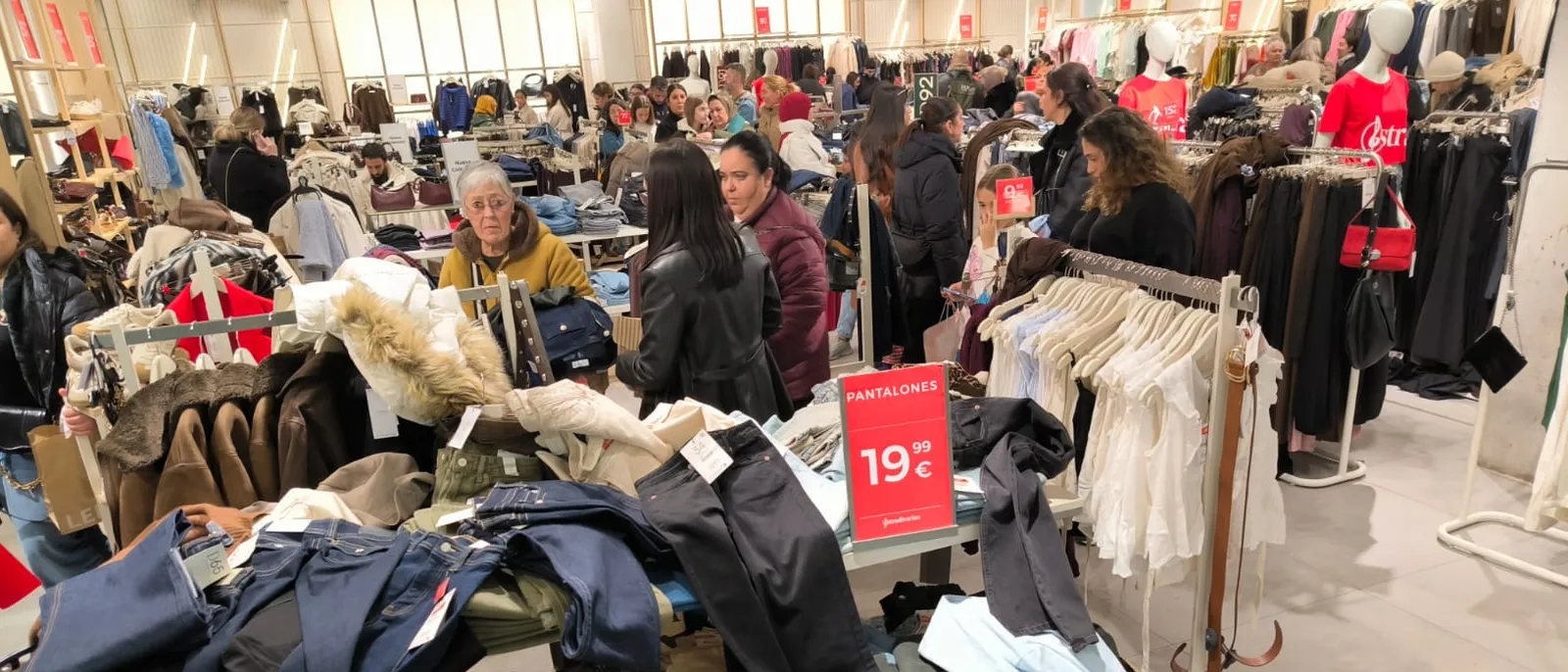 Los establecimientos de moda concentraron gran parte del interés. Percheros reordenados, mesas con prendas destacadas y zonas señalizadas con precios rebajados fueron puntos habituales de parada. Los clientes revisaban tallas, comparaban opciones y recorrían varias tiendas antes de decidirse, en una dinámica repetida a lo largo de toda la jornada. En algunos locales, la actividad derivó en colas puntuales en las cajas, reflejo del volumen de ventas en determinadas franjas horarias.