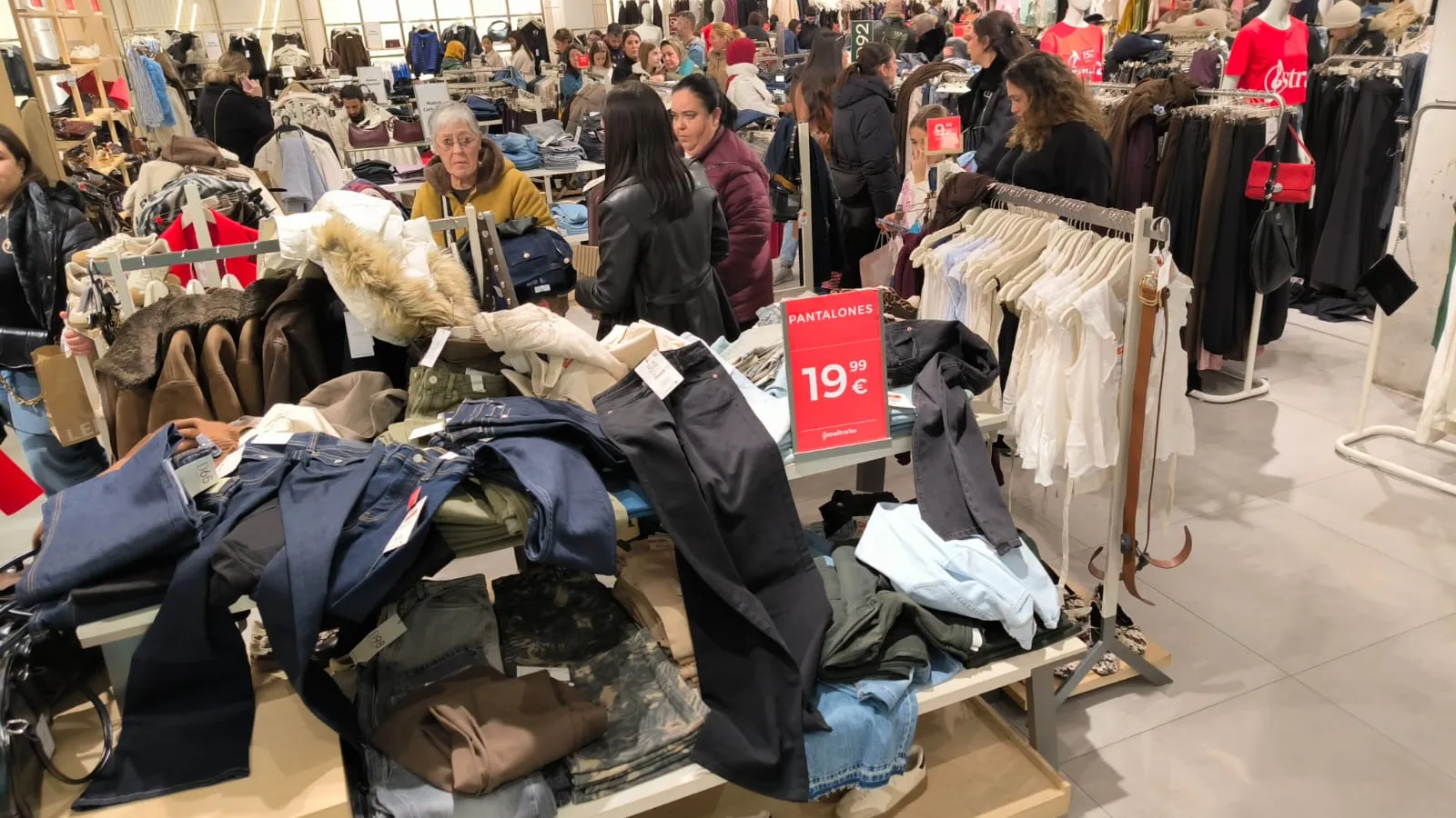 La imagen general fue la propia de un estreno de rebajas: escaparates renovados, cartelería llamativa en tonos rojos y blancos y porcentajes de descuento visibles desde los accesos a las tiendas. En el interior, los pasillos registraron un flujo constante de personas, con momentos de mayor concentración en los tramos centrales de la tarde, cuando el movimiento se intensificó de forma clara.