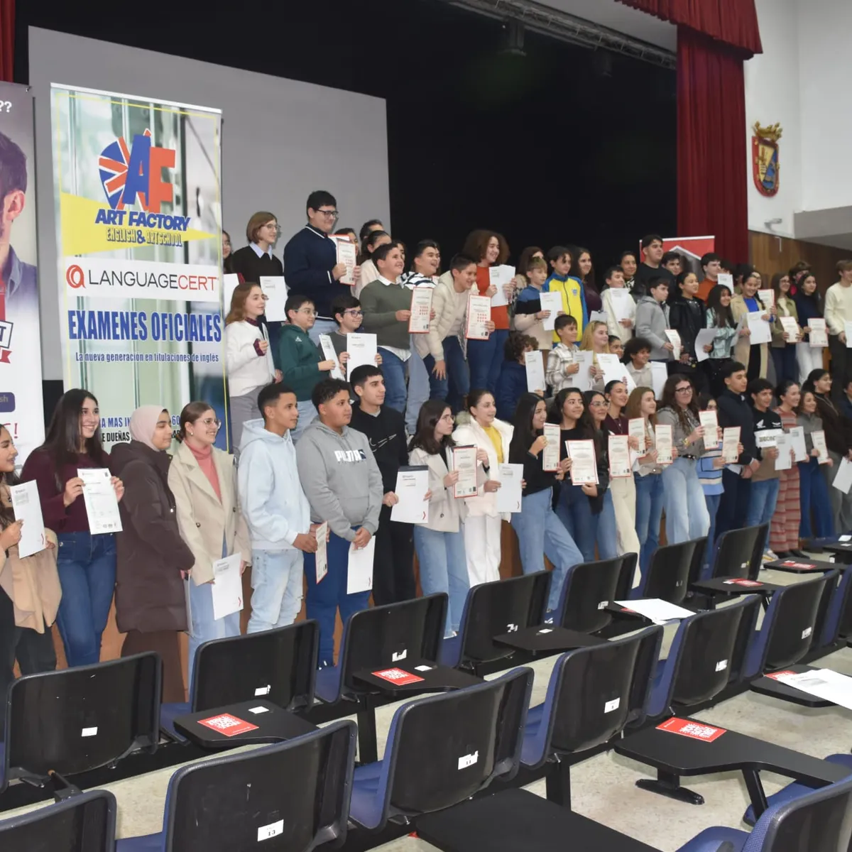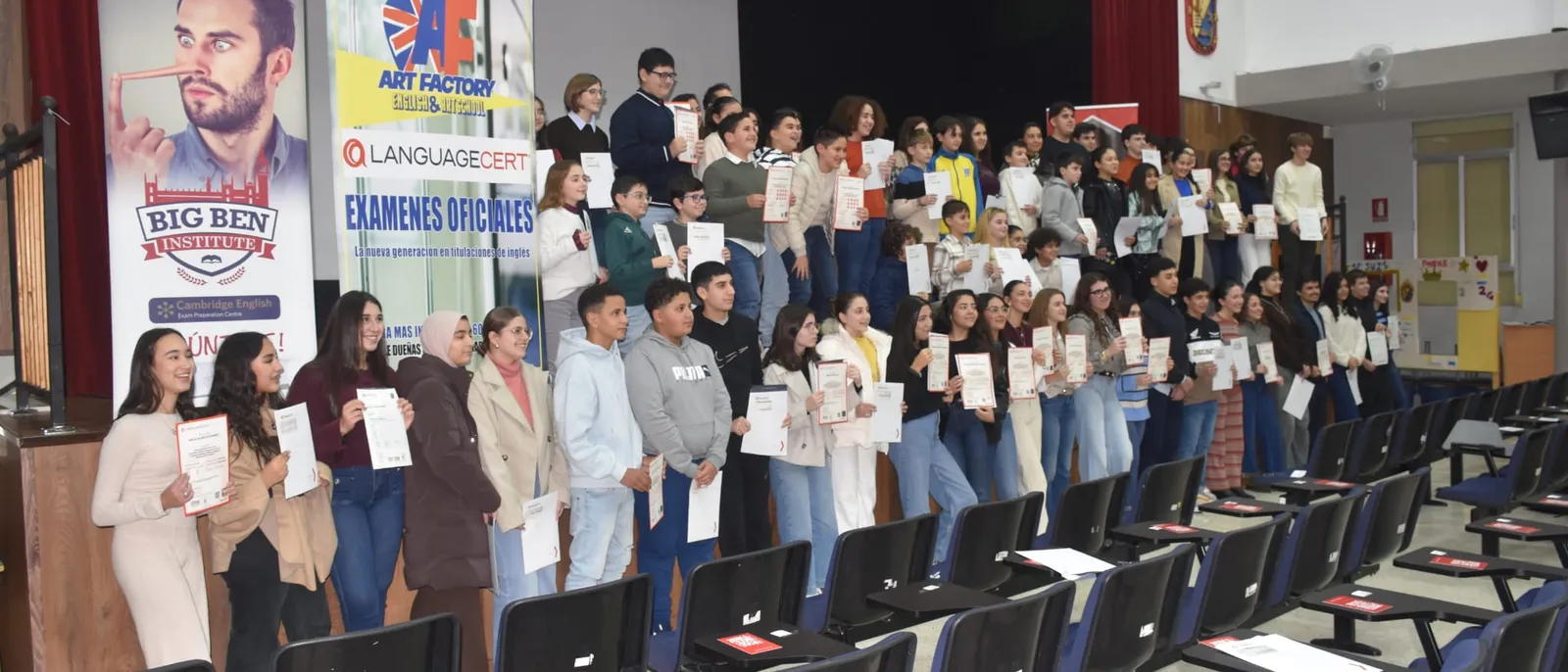 Este viernes ha tenido lugar en el salón de actos del IES Abyla la entrega de los diplomas de inglés Languagecert al alumnado de dos academias especializadas: Big Ben Institute y Art Academy English & Art School.