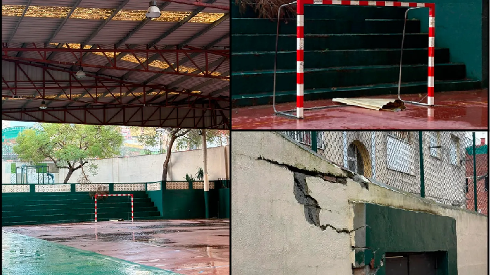 La caída de planchas del techo del pabellón y el cierre de varios patios tras las últimas borrascas, elevan la preocupación por la seguridad de alumnos y docentes