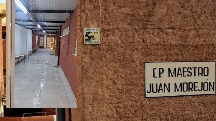Los vídeos que comparte con este diario la encargada del AMPA en el CEIP Juan Morejón son de la zona de infantil, donde se aprecia una gran cantidad de agua filtrándose por el techo y cayendo sobre cuadros de luz, aunque García insiste en que los problemas se están sufriendo en todo el centro.