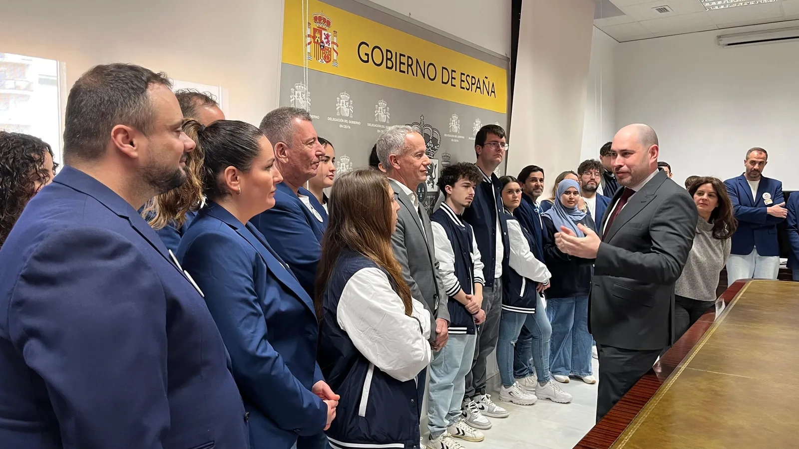 El delegado del Gobierno, Miguel Ángel Pérez Triano, ha recibido hoy a los estudiantes ceutíes de Formación Profesional que el pasado mes participaron en las pruebas de la fase nacional de certamen Spainskills. Los jóvenes han acudido a la cita acompañados de sus tutores y del director provincial de Educación, Miguel Señor.