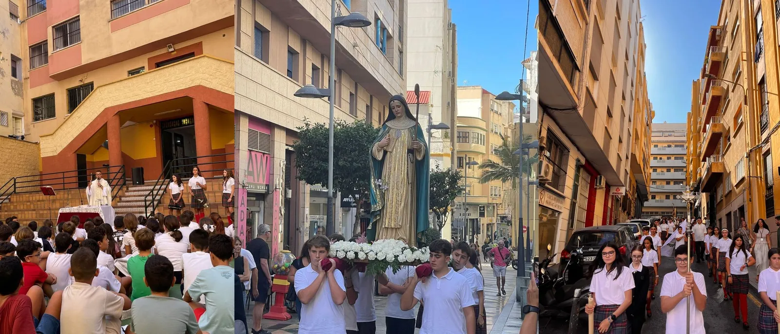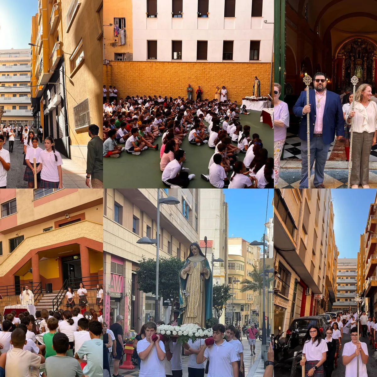 Tras la misa, la imagen regresó a la iglesia de Los Remedios acompañada nuevamente por alumnos y miembros de la hermandad, poniendo fin a una jornada vivida con fervor y alegría. El cortejo de vuelta se convirtió en un nuevo momento de unión entre el colegio y la cofradía, que mantienen un estrecho hermanamiento desde hace años.