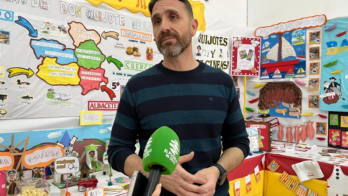 El mismo orgullo que mostraba Patricia Muñoz en el patio del centro en la mañana de este martes lo confesaba el director de la institución, Javier García. El docente acompañó a este periódico en un recorrido por los murales que decoran el gimnasio. En cada rincón colocaron coloridas y enormes cartulinas pintadas con información sobre las autonomías. A cada ciclo le tocó una diferente. La primera del itinerario es Castilla-La Mancha, a cargo del alumnado de tres años. Sus padres y maestros les ayudaron a elaborar un mapa de la comunidad con sus cinco provincias con las aventuras del Quijote como hilo conductor; maquetas de molinos de viento o guirnaldas con banderas de la autonomía. También colocaron sobre la mesa una quesera repleta de trozos de queso manchego cortado en pequeños cuadrados.