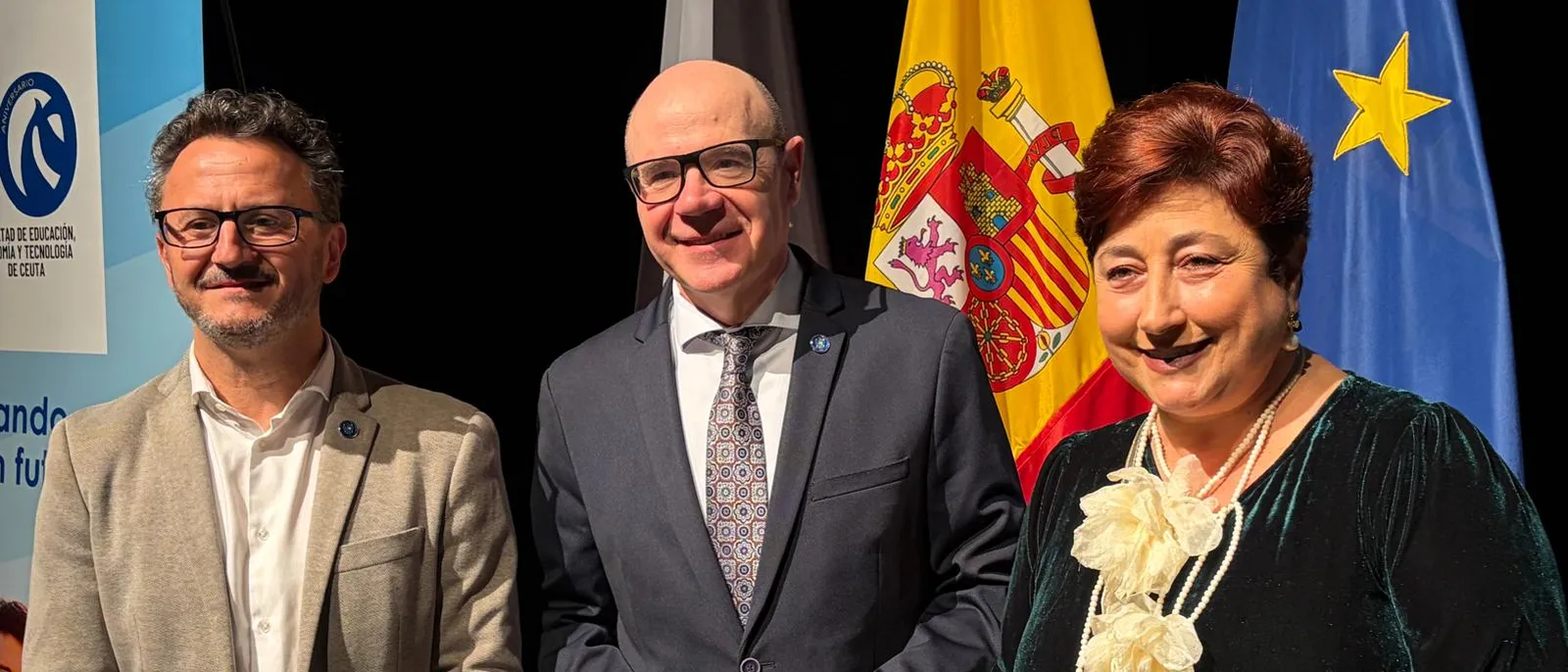 De la misma manera, la comunidad académica de la ciudad autónoma estuvo representada por una comisión formada por los profesores María José Aznar Unzurrunzaga, Eugenia Rodríguez López y Arturo Fuentes Cabrera; este último, director del documental que fue expuesto durante el acto, una obra que cuenta con el patrocinio de la Consejería de Educación, Cultura y Mujer de la Ciudad Autónoma de Ceuta.