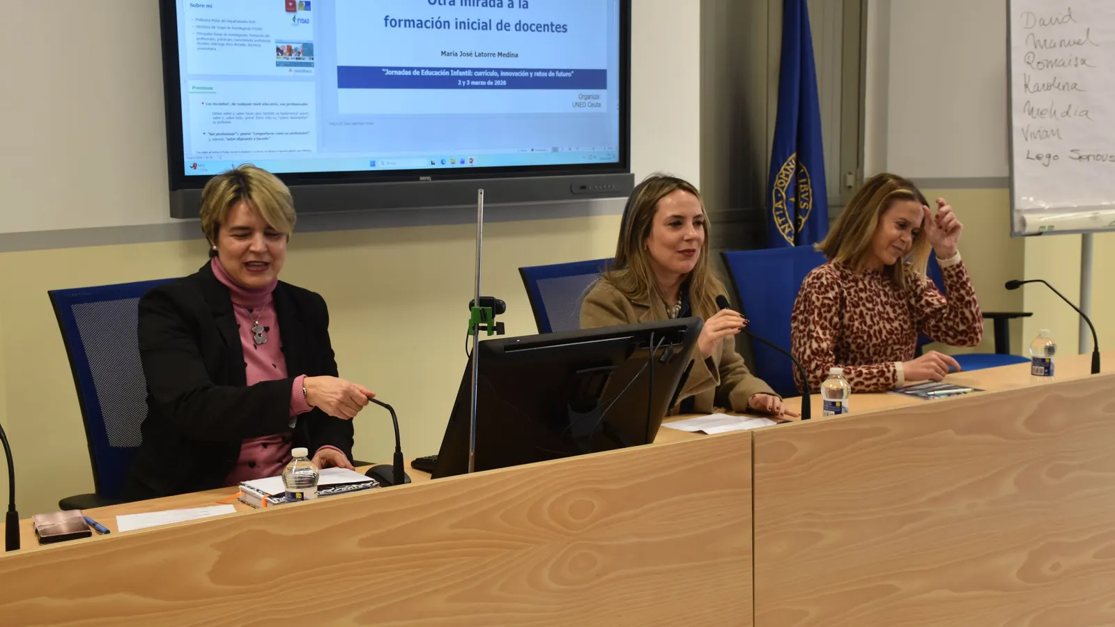 La consejera señaló que "estas jornadas representan ese compromiso de la formación continua. El propio título nos invita a reflexionar, hablamos de consolidar lo que hacemos bien, hablamos de revisar lo que se puede mejorar y además de anticiparnos a esos desafíos que están volviendo". También destacó la consejra el papel "de la educación dentro de la interculturalidad. Y hablamos de muchos desafíos que ya desde esa edad temprana tenemos delante de nuestros ojos y tenemos que poner todo nuestro empeño y toda nuestra profesionalidad para llevarlo a cabo. Estoy muy contenta de ver que hay participación en este tipo de jornadas organizadas por la UNED, porque queda demostrado el interés que hay, ya no solo de los profesionales que a día de hoy están en las aulas, sino también del alumnado que está formándose en este momento y que tiene esas inquietudes y esas ganas de saber qué hay más allá de los propios temarios o de los temas que estén estudiando en este momento".