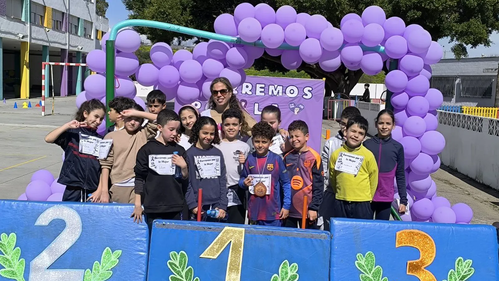Bajo el lema "Corremos por la Mujer", la comunidad educativa al completo "se calzó las zapatillas para participar en una carrera solidaria y reivindicativa por el patio del centro. Durante la jornada también se contó con la participación de los alumnos de 5º y 6º del CEIP Ramón y Cajal, quienes se encuentran acogidos en el centro mientras finalizan las obras de su colegio".